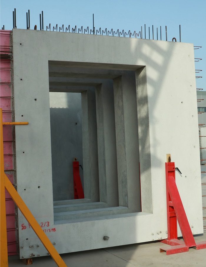 公司設有PC車間、模具車間、中心實驗室、全封閉式混凝土綠色環(huán)保攪拌站。其中,PC車間擁有4條高效節(jié)能生產(chǎn)線,包括墻板自動化生產(chǎn)線、板類構件自動化生產(chǎn)線、固定臺模、全自動化鋼筋加工生產(chǎn)線。